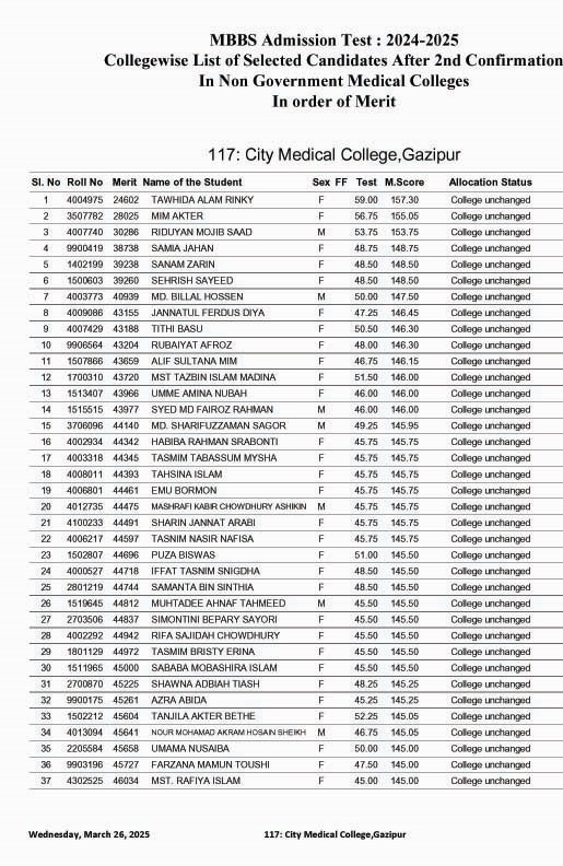 City Medical College offers 5 years MBBS course approved by Ministry of Health & Family Welfare, Govt. of Bangladesh. Affiliated by University of Dhaka, recognized by Bangladesh Medical & Dental Council (BMDC).